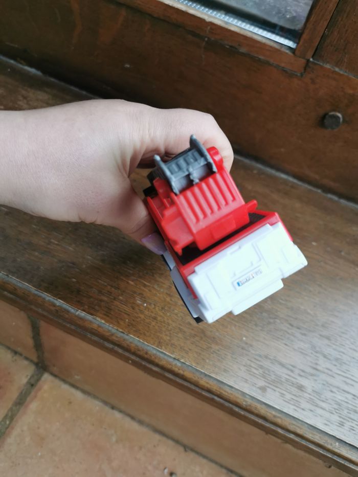 Jouet camion de pompiers Dickie Toys, en plastique, en très bon état général, taille 15,5x5,5x7,5 cm, poids 106g.