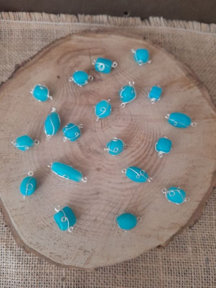 Lot de 20 perles bleu en verre et fils de fer. D'autres perles et accessoires de dispo dans mon dressing n'hésitez pas à jeter un coup d'œil ou à me demander