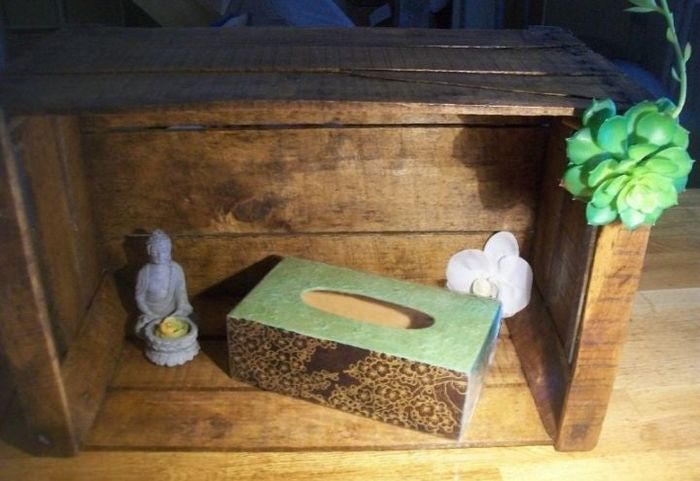 Boite a mouchoir en bois bleu vert fleur doré