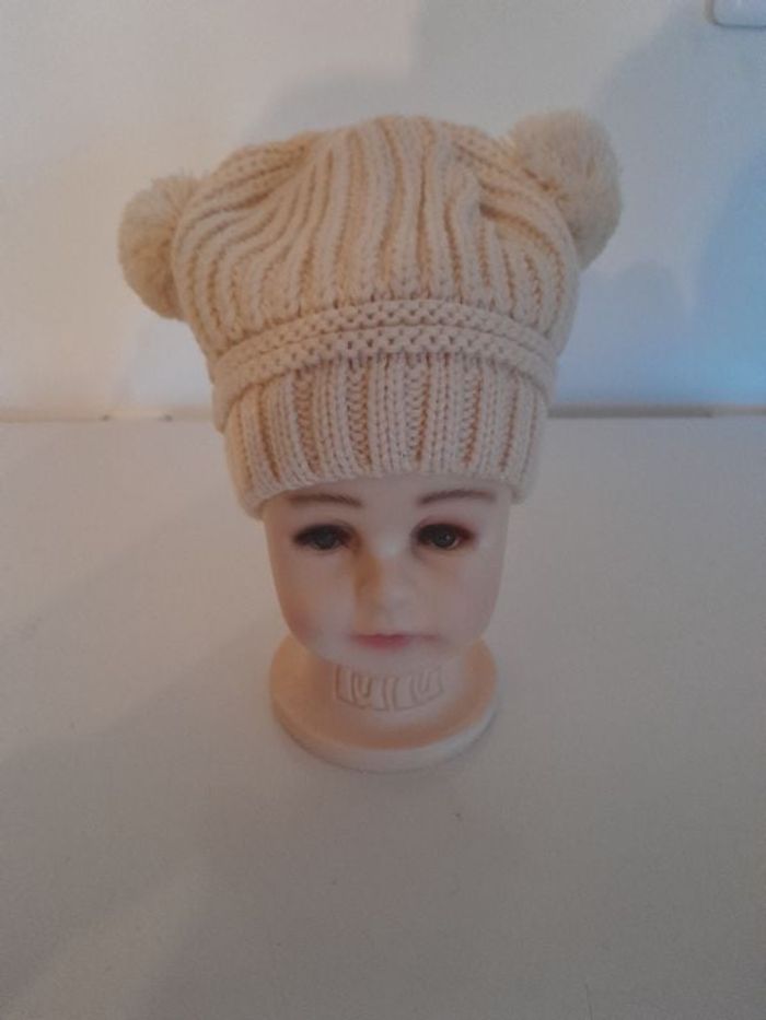 Bonnet pompons beige Taille 2-3ans Taille élastique Neuf, jamais porté Mixte