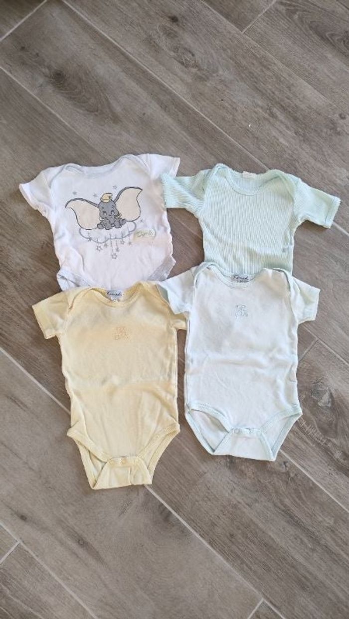 4 bodies manches courtes mixte taille 6 mois. Marques diverses. Possible de vendre à l'unité.