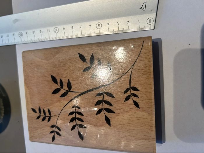 Grand tampon bois branche Florileges design Dimensions : voir photos Le revêtement plastique se décolle un peu mais la partie tampon est parfaite. #tamponbois #tamponflorilegedesign #florilegesdesign #scrapbooking