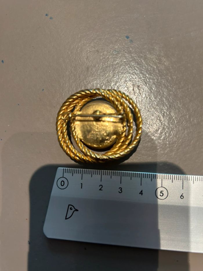 Broche dorée avec fausse perle centrale. Dimensions : cf photos Attache en très bon état Envoi rapide et soigné par tout moyen de transport dont Vinted Go. #broche #bijoux #bijouxfantaisie