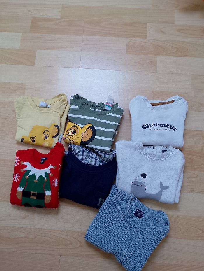 Lots vêtements bébé garçon en 12 mois Body , jeans, jogging, chemise, Tee shirt manche longue... Marque Kiabi , TAO , 1 tee shirt Hugo boss , levis et redskins .. A peu près 70 pièces au total