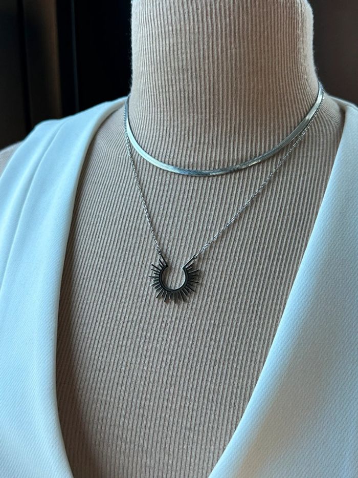 Collier multirangs en acier argent avec chaînette réglable - photo numéro 1