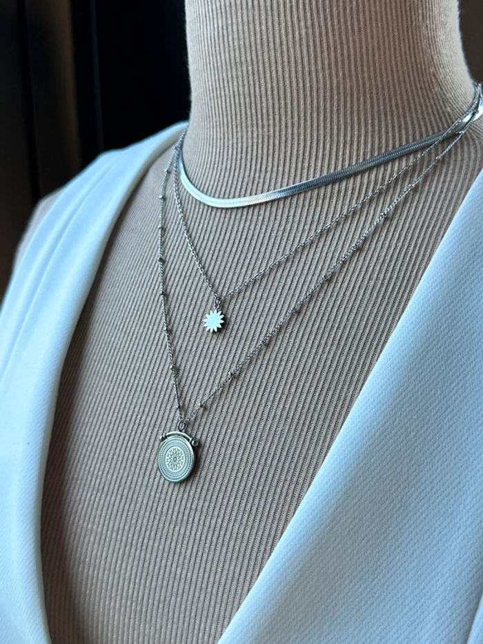 Collier 3 rangs en acier inoxydable argent - photo numéro 1