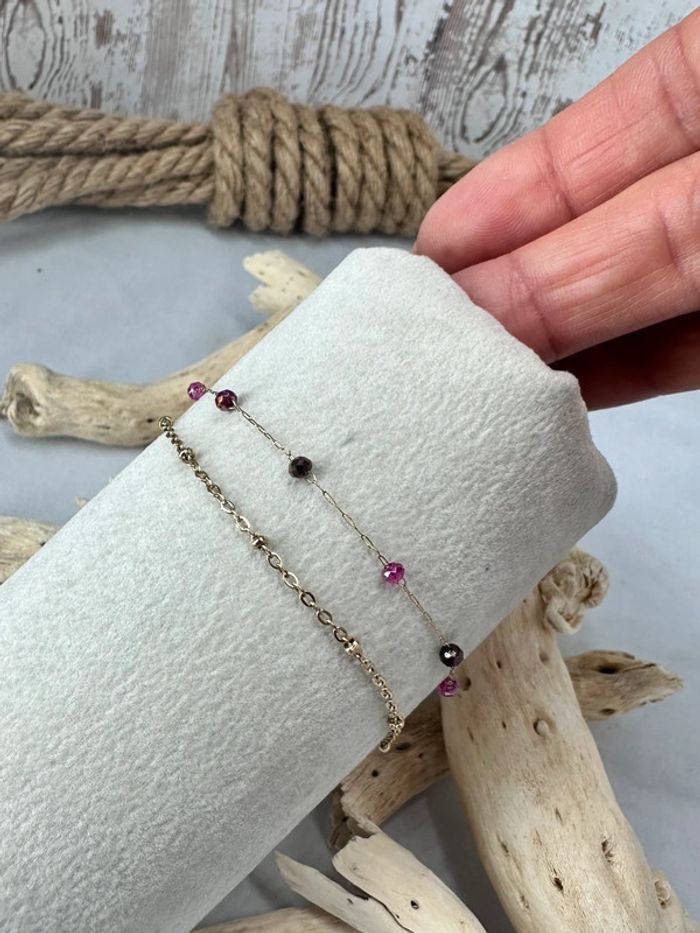 Bracelet 2 rangs en acier or et pierre cristal multicolore - photo numéro 2