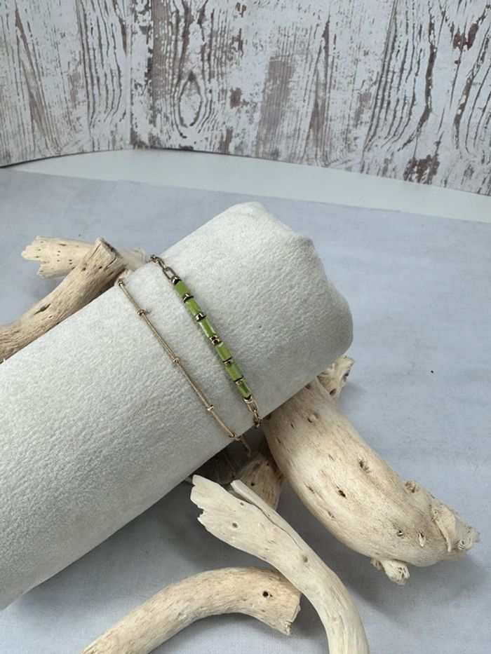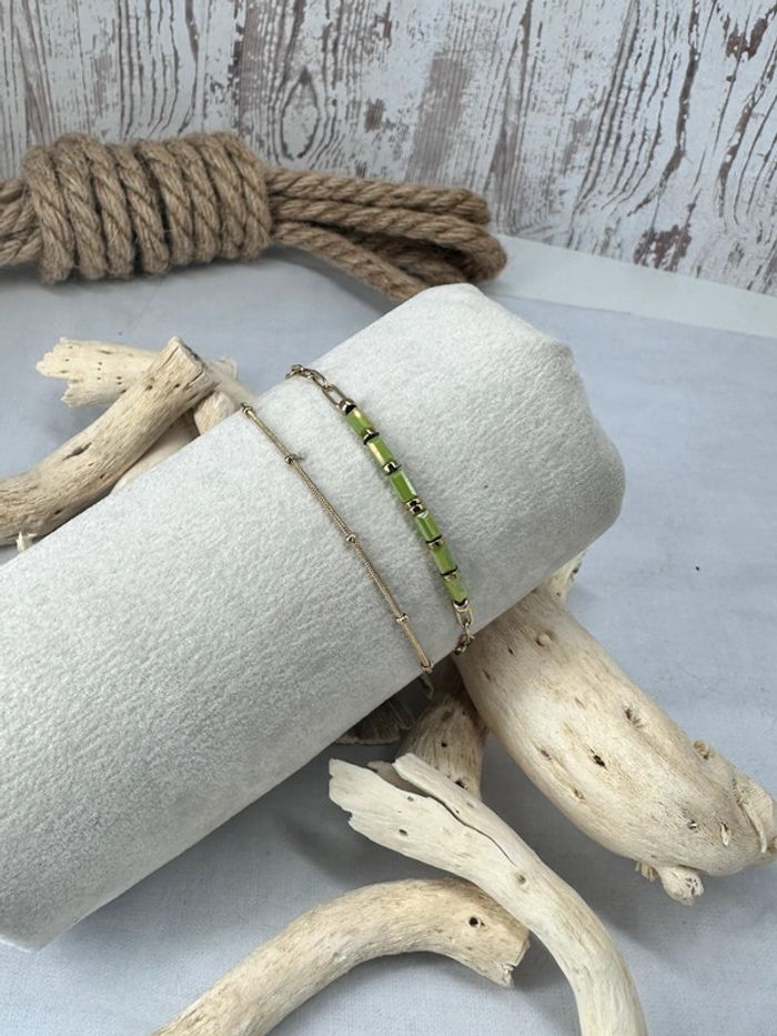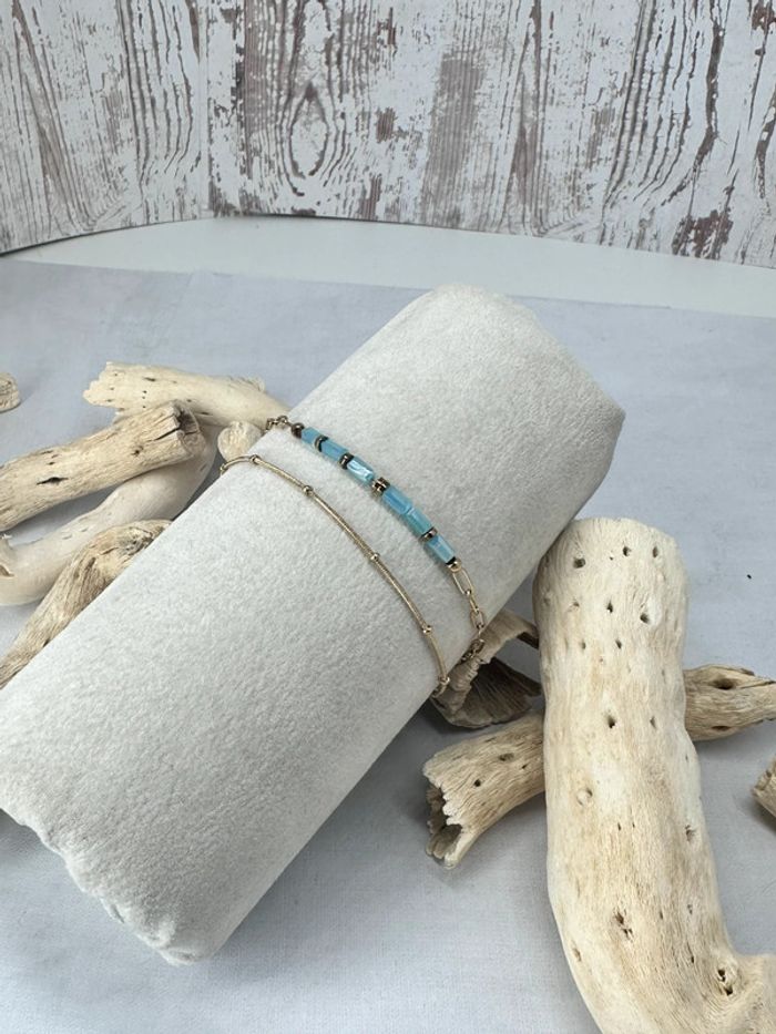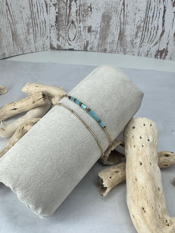 Bracelets plusieurs rangs en acier or et pierre cristal turquoise