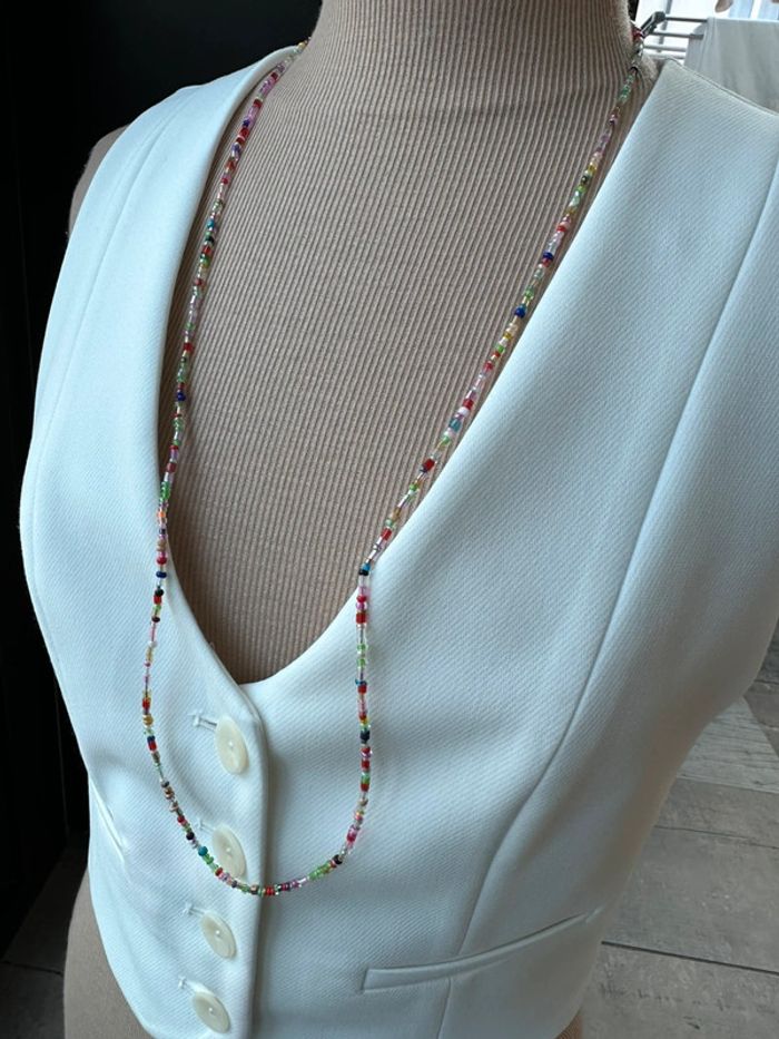 Collier double rangs ou sautoir en perles multicolores - photo numéro 1