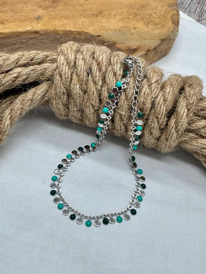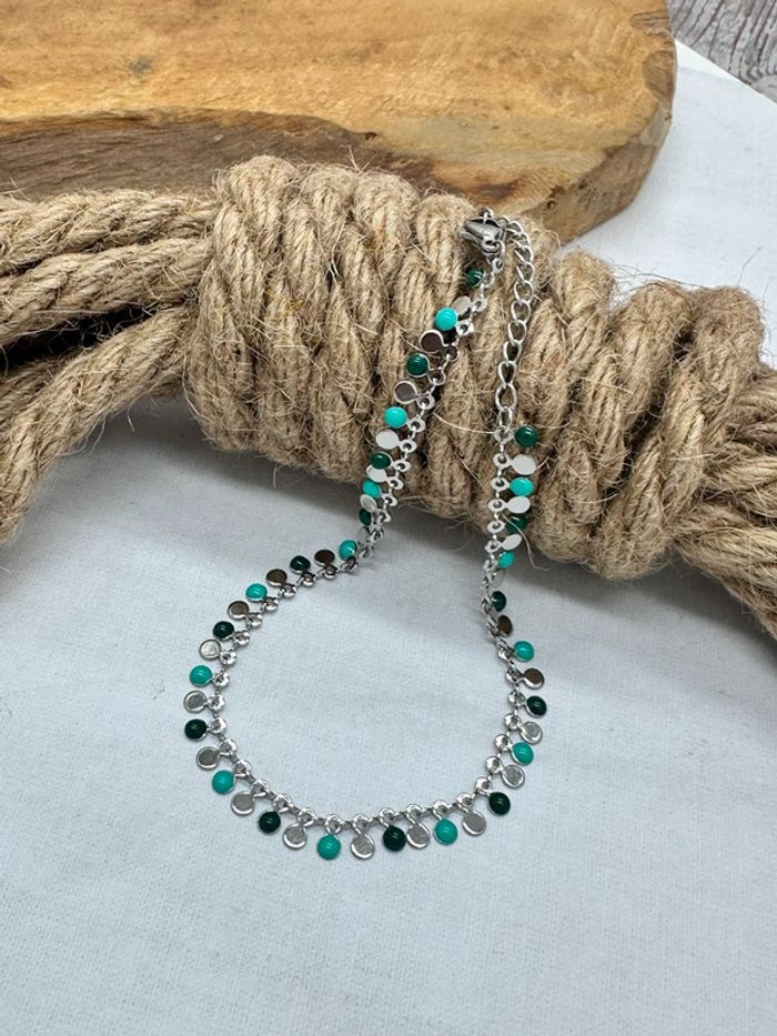 Braceydd cheville acier inoxydable argent et breloques en émail vert - photo numéro 1