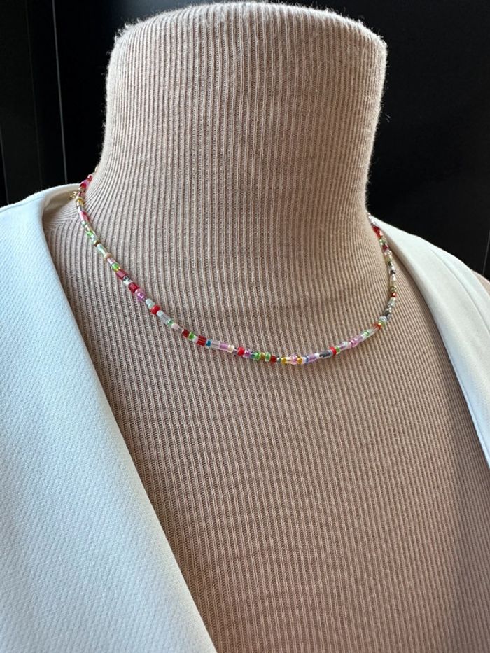 Collier ras de cou en perles multicolore avec chaînette réglable