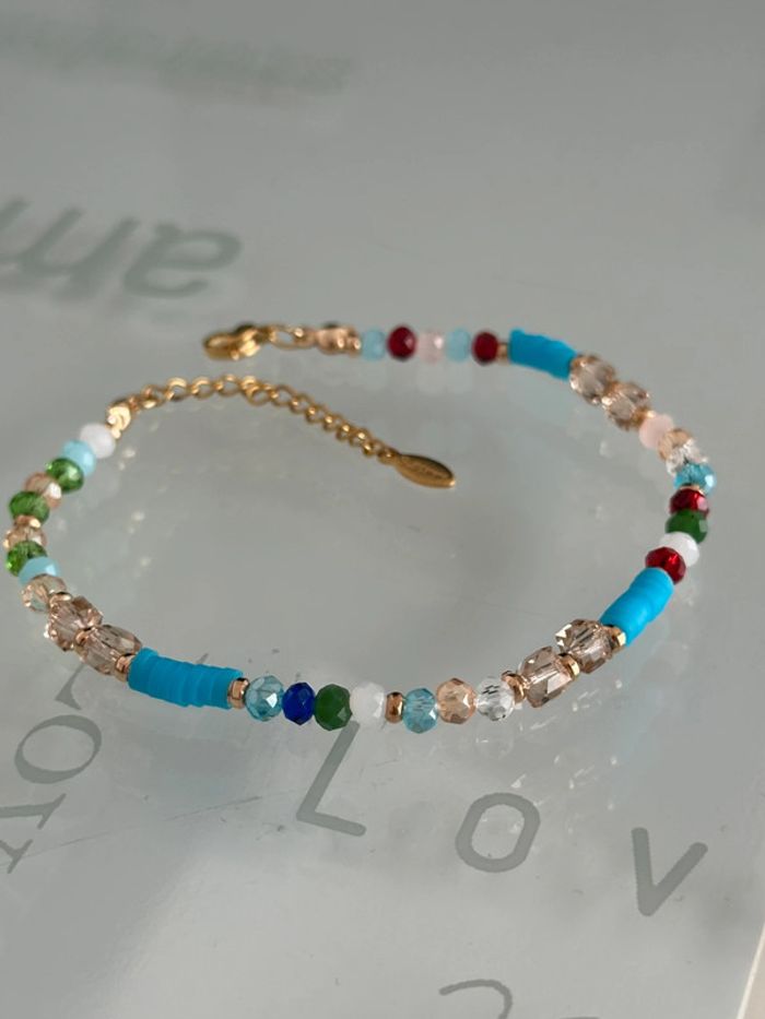 Bracelet de cheville en perles et cristal avec chaîne réglable