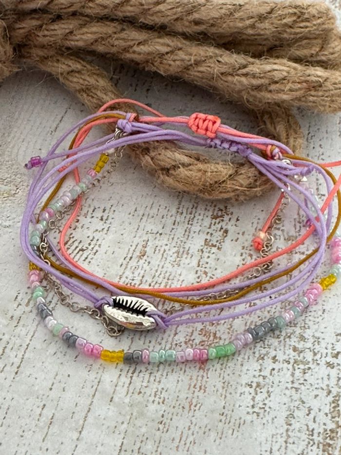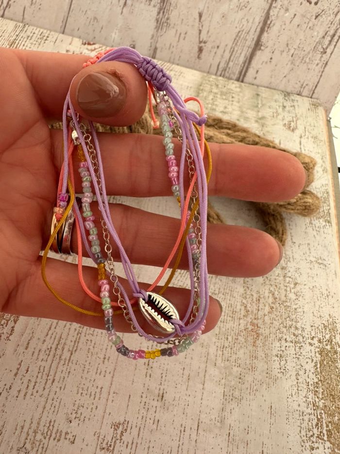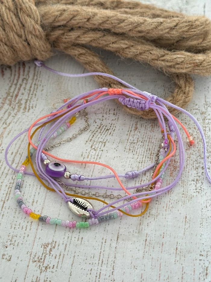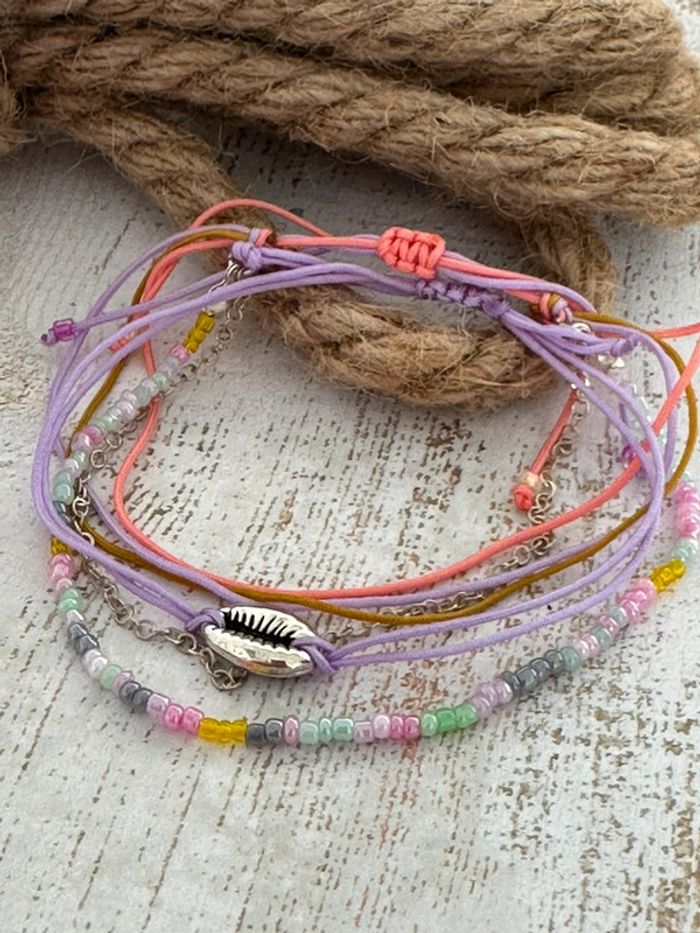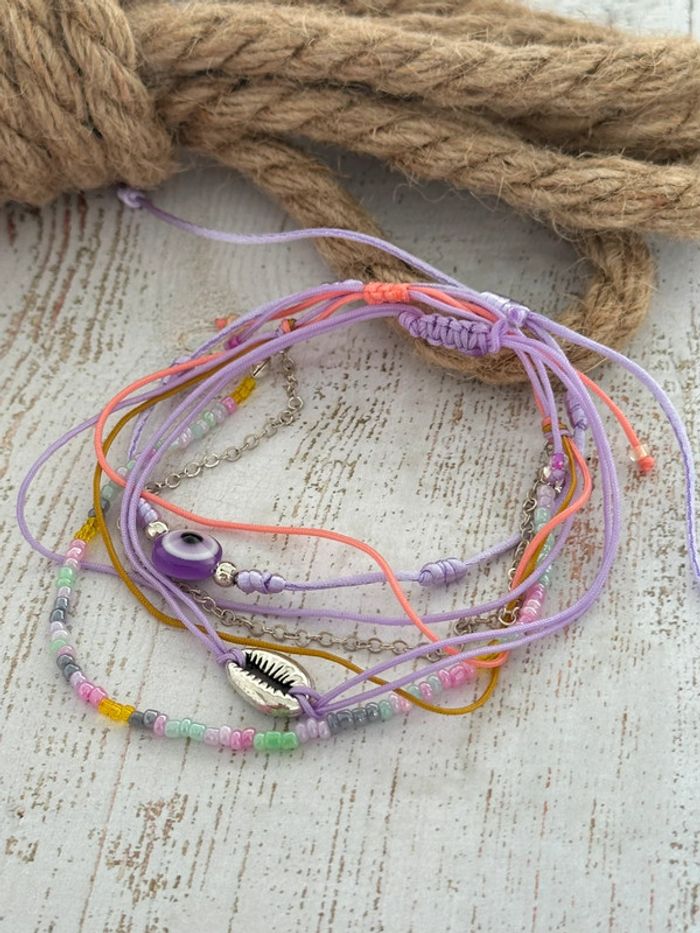 Lot 3 bracelets breloque en perles de couleur ton parme lilas neuf