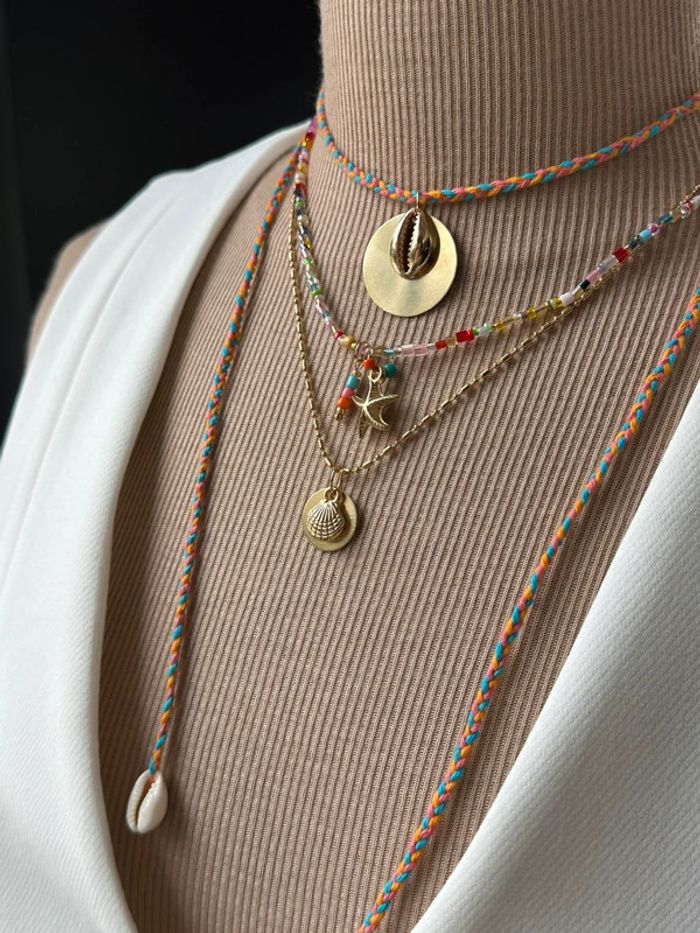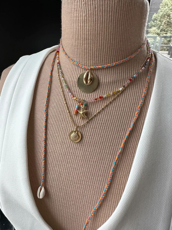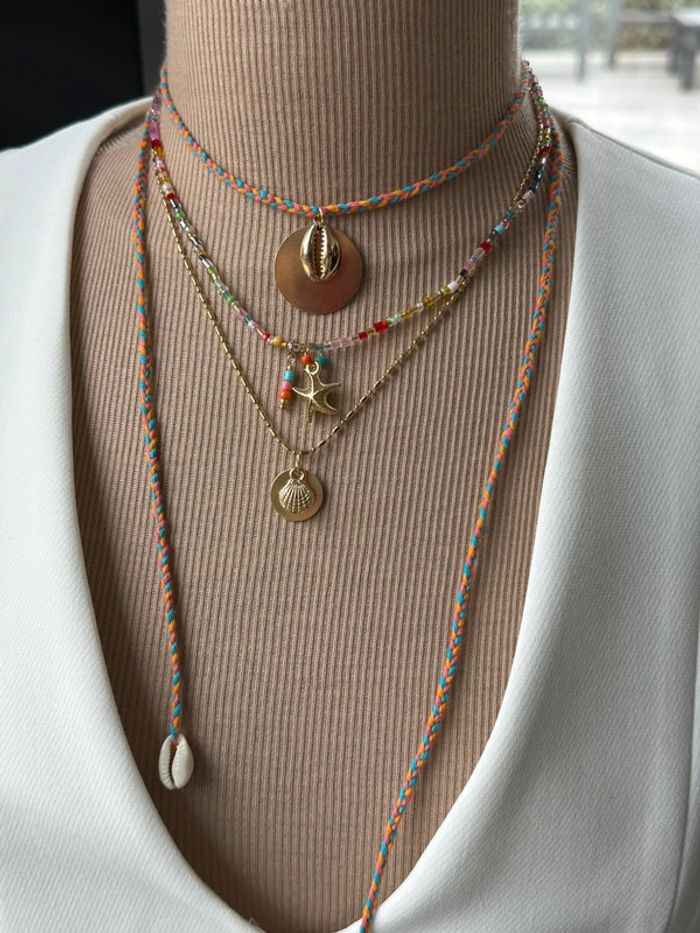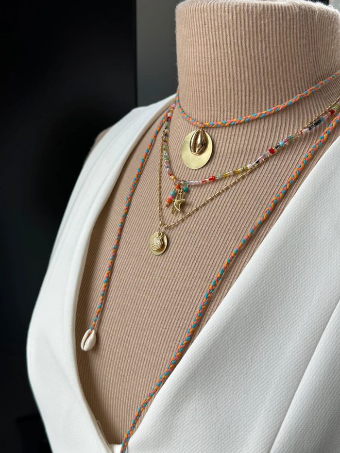 Lot de 2 colliers fantaisie couleur Un cordon à porter de différentes façon et un collier multicolore à plusieurs rangs