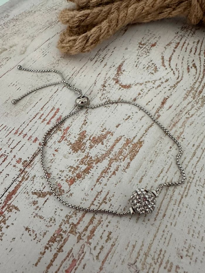 Bracelet coulissant en acier et boules strass - photo numéro 1