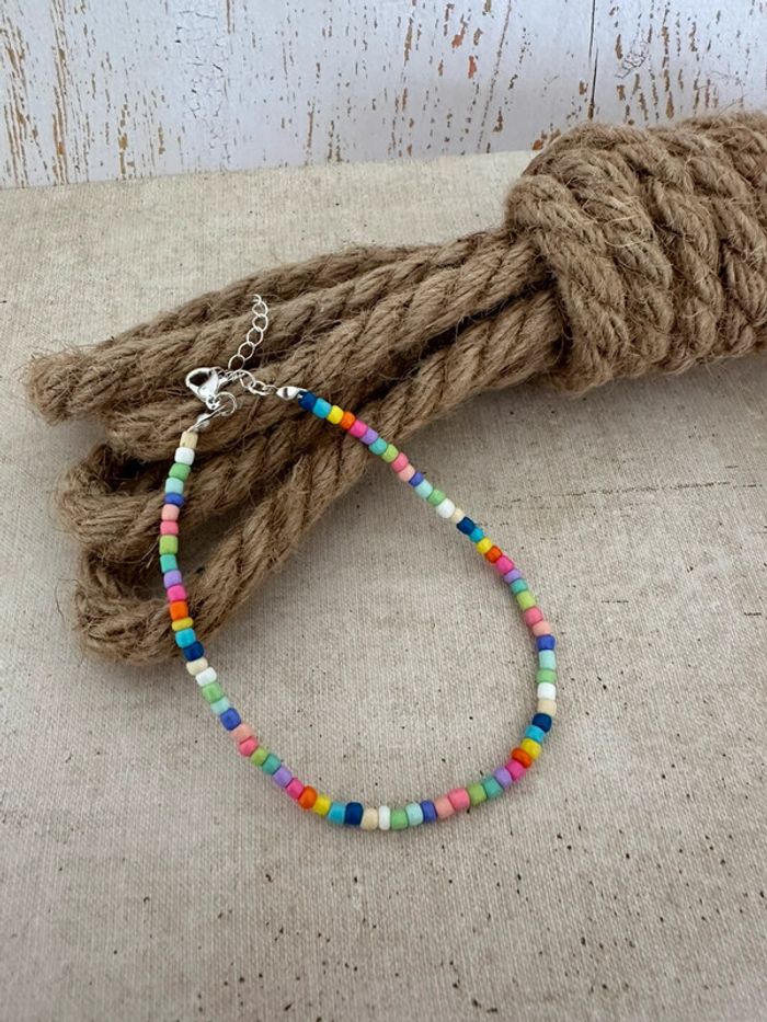 Bracelet de cheville perles de rocaille multicolore avec chaînette réglable
