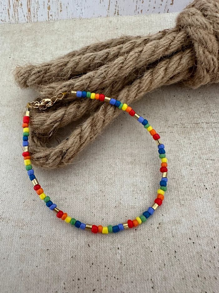 Bracelet de cheville perles de rocaille multicolore avec chaînette réglable neuf