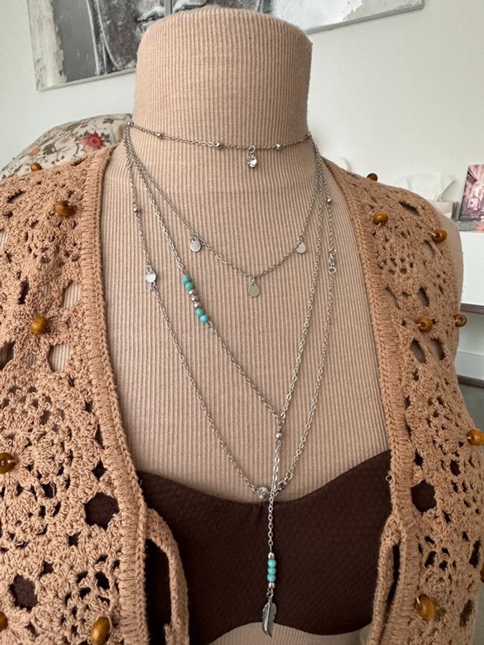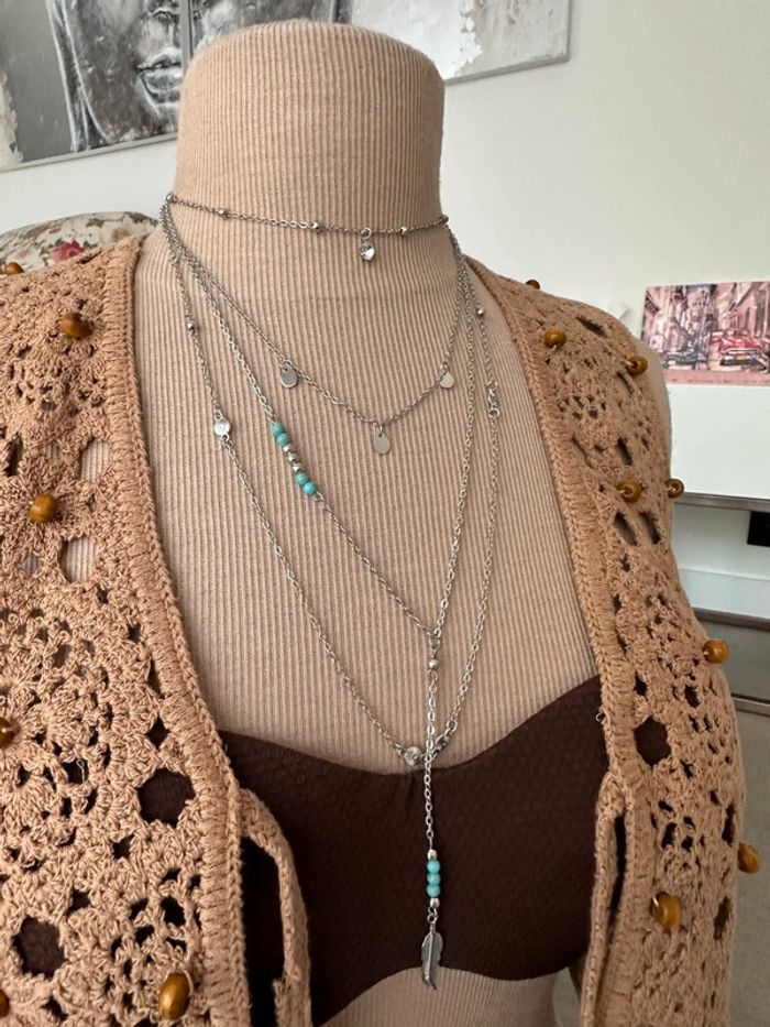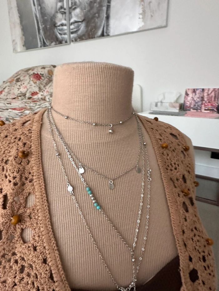 Collier sautoir à plusieurs rangs en laiton argent antiallergique - photo numéro 3