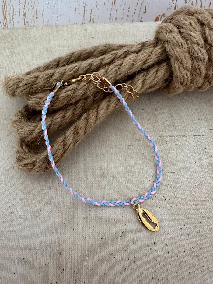 Bracelet de cheville tressé nylon lilas rose pendentif grain de café