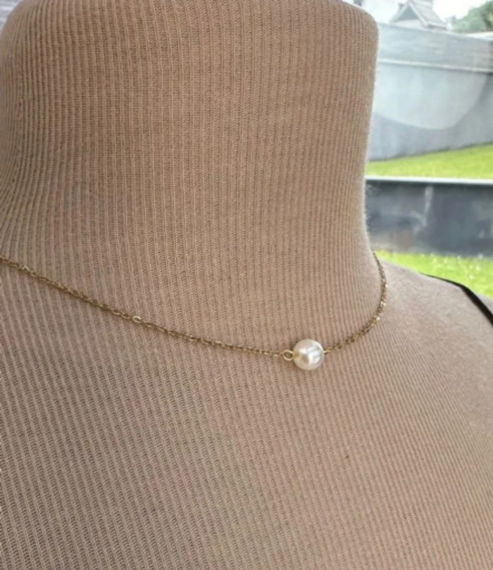 Collier dos mariée en laiton or et perles - photo numéro 3