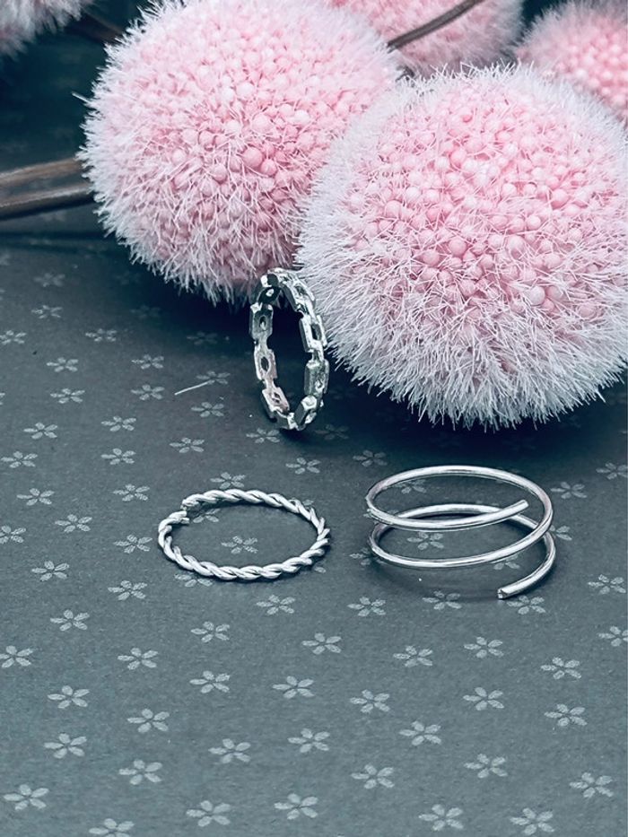 Lot de 3 bagues couleur argent Bagues réglables