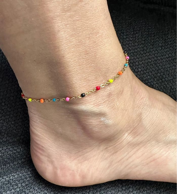 Bracelet de cheville acier inoxydable or et émail multicolore