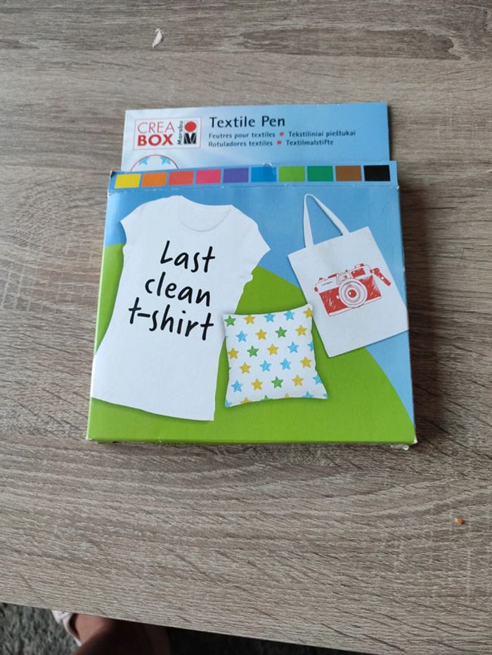Jamais utilisé Feutre textiles a base d'eau Avant d'appliquer la peinture rincer l'après l'adoucissant laisser sécher recouvrir le tissu et peindre ensuite sur le textile appuyez légèrement la pointe du feutre dans le tissu et pour le fixer il faut le passer au four ou alors dans une serviette adaptée au coton et le repasser lavage en machine 60 degrés #peinturetextile #loisirscréatifs Les stylos sont neufs La boîte est un peu abîmée et un écriture dessus