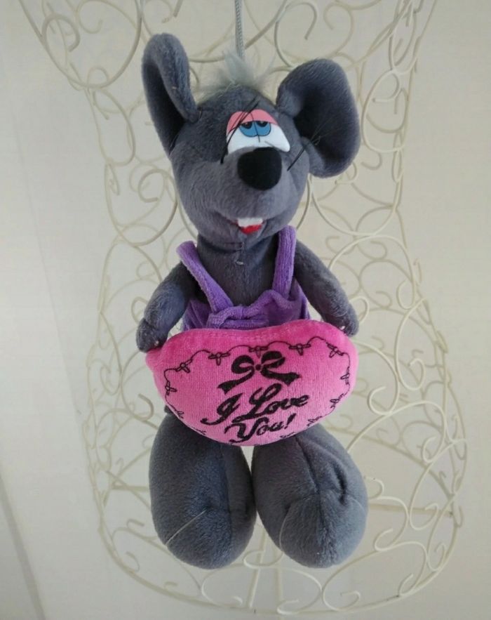 Souris en peluche salopette détachable. Avec son cœur i love you.