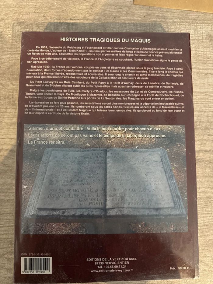 Éditions de la Veytizou, illustré par Béatrice Detivaud. Cet ouvrage richement documenté raconte les drames vécus par les maquisards de l’Auvergne, du Limousin, du Périgord, du Poitou-Charentes, du Quercy, de la Montagne Noire et de la Gironde. 🆕 Neuf avec étiquette 💰 10,00 € 📦 Envoi rapide et soigné