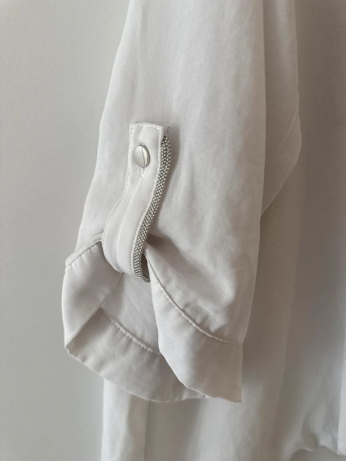 ✨ Élégant haut fluide de la marque Charlott’ (collection prêt-à-porter), en taille 42 (XL). Coupe croisée à col tailleur, matière légère, manches 3/4 avec revers et détail perlé. Idéal pour une tenue habillée ou décontractée chic. ⸻ ✅ Détails : • 🧵 Marque : Charlott’ • 📏 Taille : 42 (XL) • 🎨 Couleur : Blanc • ✨ Coupe fluide, col croisé, poche poitrine, manches retroussables avec détail bijou • 🧼 État : Très bon 📬 Envoi rapide et soigné 📸 Plus de photos sur demande