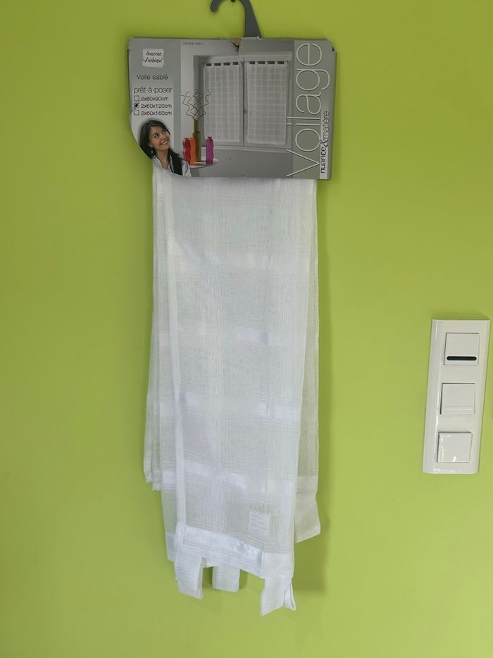 2 rideaux voile blanc prêt à poser 60 x 120 cm 100 % polyester Neuf