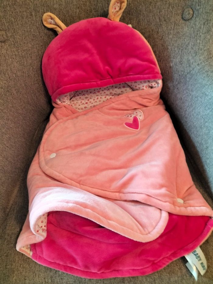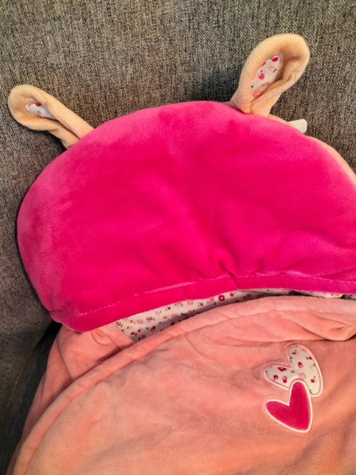 Nid d'ange Baby Nat' avec passage de sangles Collection doudous calins Fermeture facile par des pressions Entièrement doublé Très douillet Très joli look avec ses petites oreilles Fabrication française