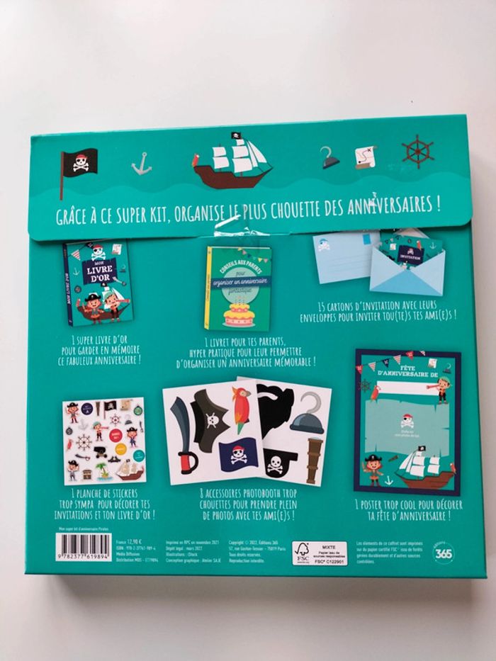 Kit d anniversaire pirate Tout pour organiser un super anniversaire Cartons d invitation Livre d or Livre pour les parents Planche de stickers Accessoires pour photos Poster Jamais utilisé