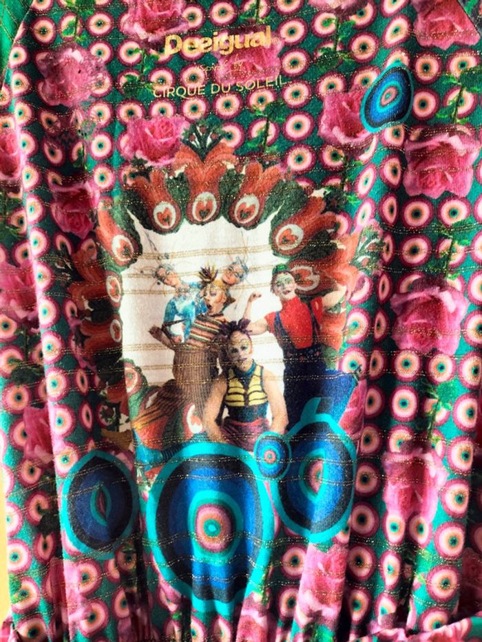 Robe d été Desigual Inspirée par costume du cirque du soleil Très beau design Resserrée a la taille élastique en bas pour effet bulle Portée mais très bon état