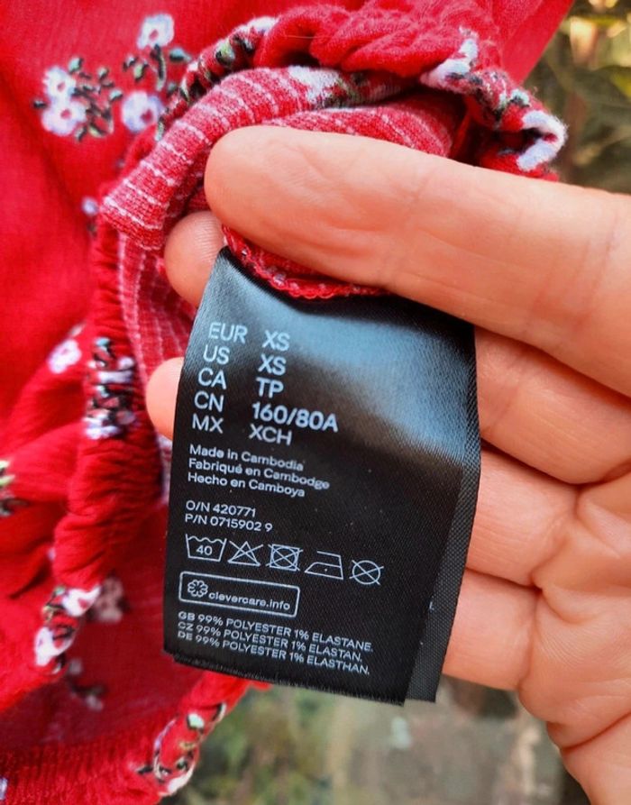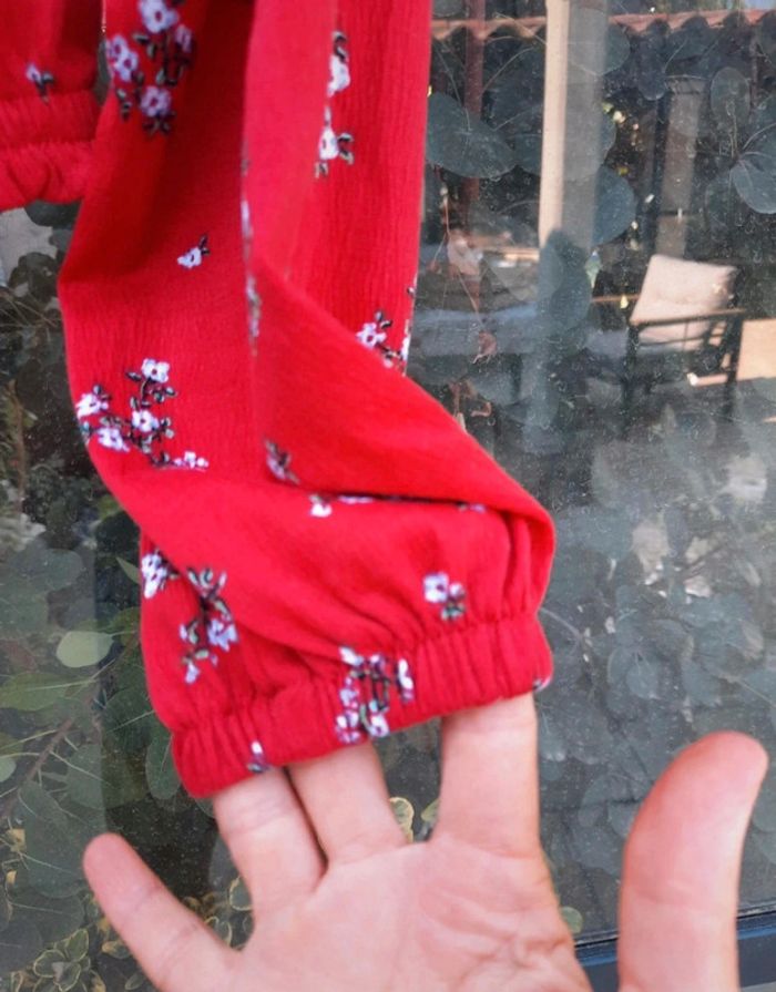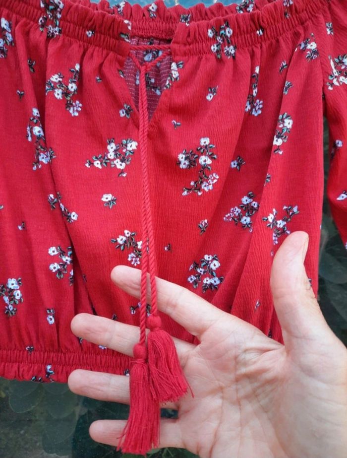 Top crop rouge fleuri de petites fleurs de cerisiers blanches T 34 Décolleté élastique pour des épaules + ou - dénudées /Polyester/Élasthane Taille et manches aussi élastique. Petit cordon à l encolure avec petits pompoms. Longueur 30 cm environ N hésitez pas à visiter mon profil et laissez vous guider par mes différents # #clementine13430femmest34 #13430femmest34 #hautboheme #bohème #boheme34 #hippie #hippiechic
