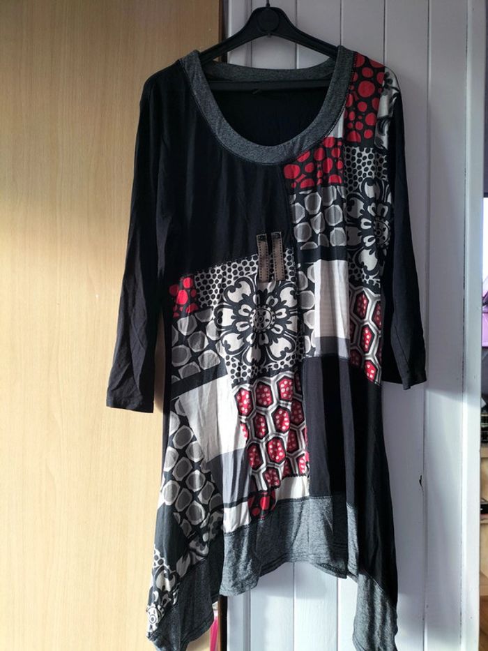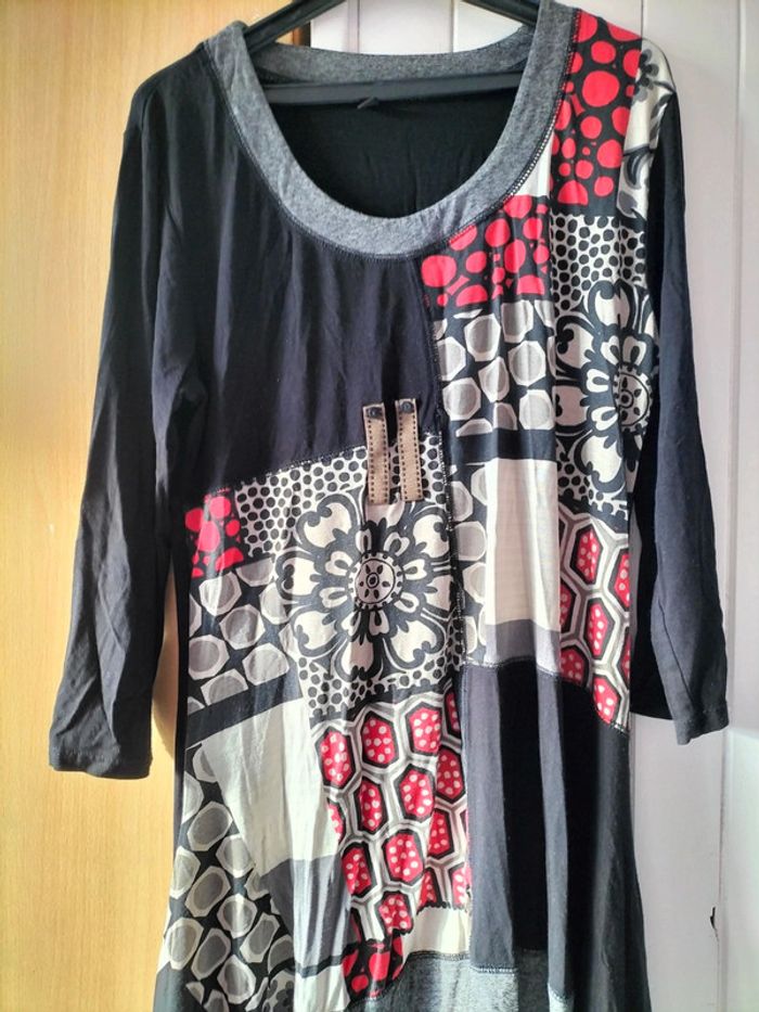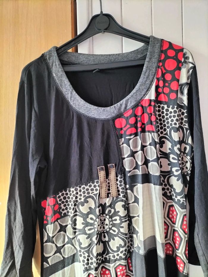 Tunique femme Motif fantaisie noir gris rouge Bon état