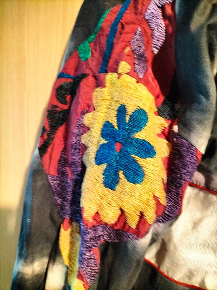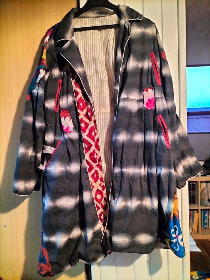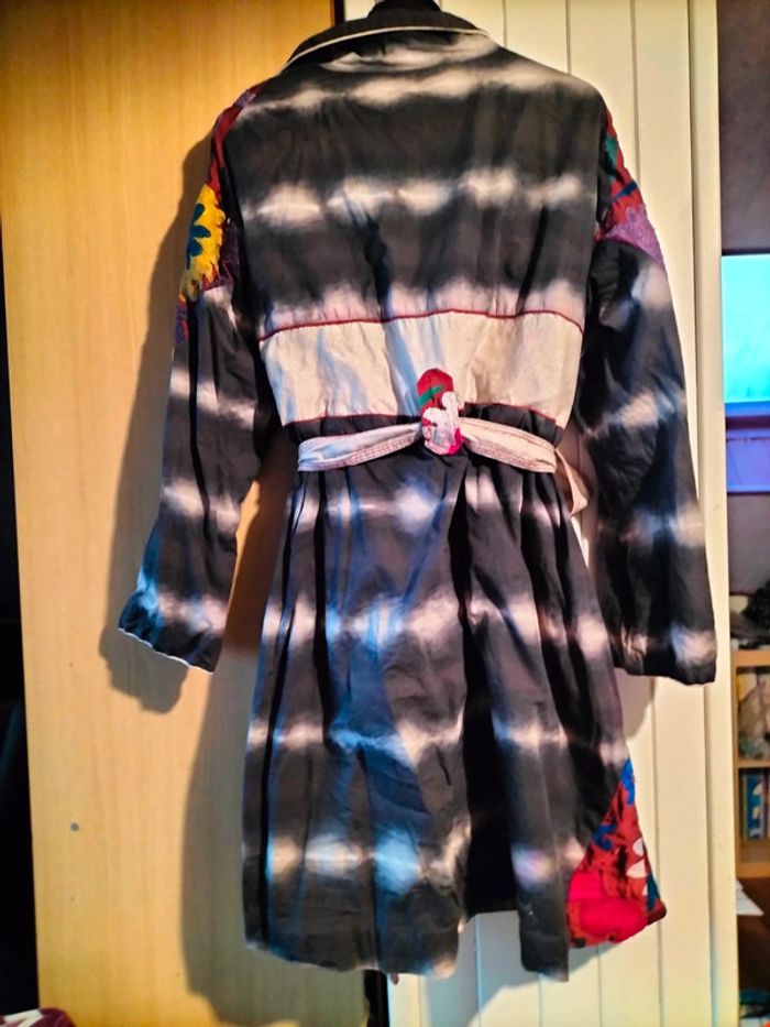 Manteau léger fantaisie Broderie sur les épaules Fermé par une ceinture Manches à revers Porté mais bon état