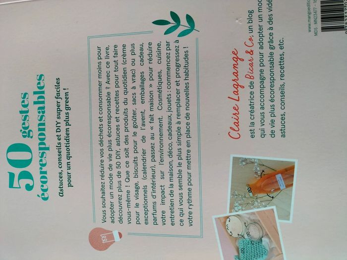 Livre de Claire Lagrange du blog Bica&co 50 Gestes ecoresponsables Pleins d astuces conseils et diy pour un quotidien plus green ! Très bon état