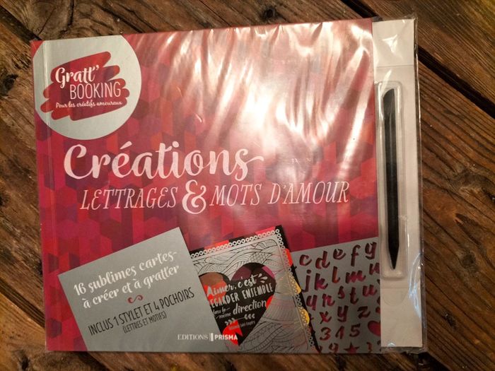 Livre Gratt Booking Créations Lettrages&mots d amour 16 cartes à créer et à gratter Inclus 1 stylet et 4 pochoirs