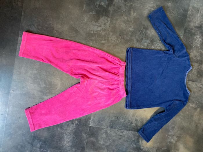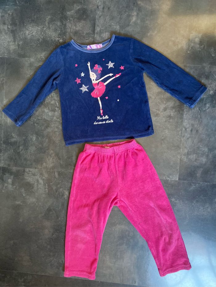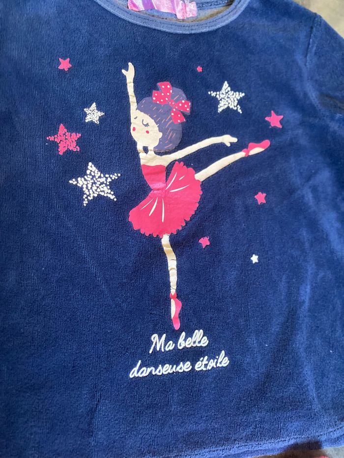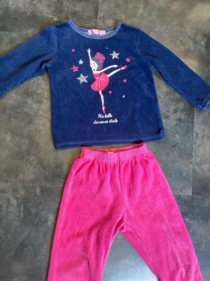 Pyjama velours danseuse Bleu marine et rose 3 ans Tissaia Usures d'usage visible sur les photos , reste satisfaisant 75 % coton, 25 % polyester