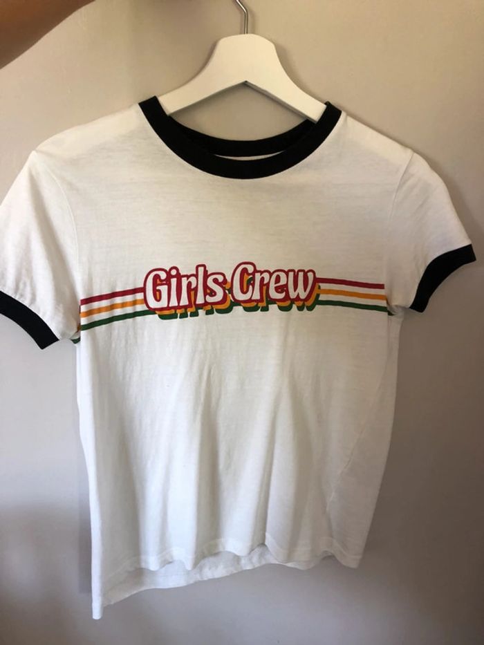 T-shirt en très bon état mise à part une petite tache jaune sur le devant (voir photo). Taille XS. #vulariFemmesXS34