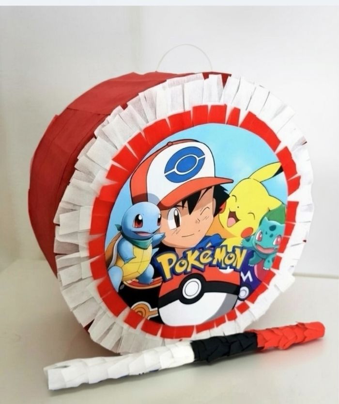 Pinata pokemon pickachu, bâton et masque Dimensions 25 cm de diamètre. Elle contient une trappe pour la remplir et un crochet pour la suspendre. Envoi rapide et soigné. Pinata à casser : Pinata de 25cm x13cm sans bâton Prix, 11e Pinata de 25cm x13cm avec bâton, masque... Prix, 15e. Pinata de 30cm x13cm sans bâton Prix, 15e Pinata de 30cm x13cm avec bâton, masque. Prix, 20e. Bâton en bois multicolore mesure 40cm Piñatas à ficelles : Environ 15 ficelles multicolore. La pinata ne se détruit pas. Vous pouvez la garder comme souvenir ou la réutiliser. Idéal pour les plus petits ou les petits espaces. Elle contient une trappe pour la remplir et un crochet pour la suspendre, plus une trappe plus grande pour les ficelles. Pinata de 25cm de diamètre x13cm avec ficelles. Prix, 15e. Pinata de 30cm de diamètre x 13cm avec ficelles. Prix, 20e. D'autres articles disponibles. Invitations à remplir Invitations à personnaliser. Cake topper /décoration gâteau personnalisé. #anniversairegarcon #cadeaudanniversaire #decorationfete #decorationanniversaire #pinata #pignata #anniversairegarcon #cadeaudanniversaire #anniversaireenfant #anniversairepokemon #pokeball #pikachu #pokemon #fêtedanniversairepokemon #pinata #pignata #fetePokémon #sachapokemon