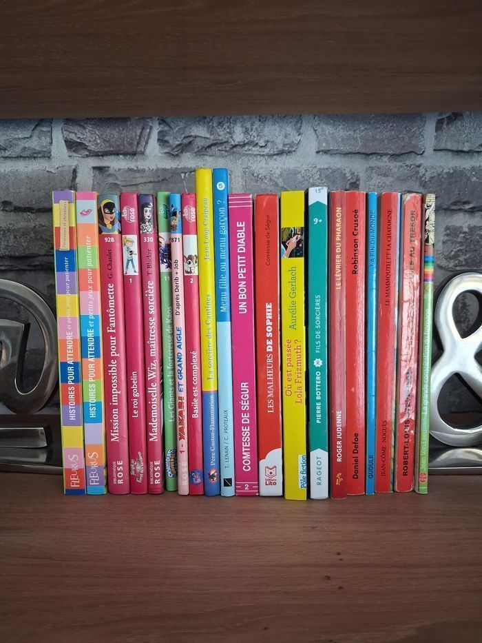 Beaucoup de choix pour fille ou pour garçon. Princesses, fées , Sorcières, dinosaures, chevaliers, chiens ou chats, il y a forcément un livre qui intéressera les enfants. Cette annonce est dissociable en fonction de vos envies. N'hésitez pas à me contacter. Profitez des codes réduction de Beebs pour faire le plein de belles histoires. Mission impossible pour Fantômette (vendu) Mademoiselle Wiz maîtresse sorcière (vendu) Sophie et la forêt des Ombres Le roi gobelin (vendu) La grande conspiration du fromage (vendu) 2 titres de la Comtesse de Ségur : Les malheurs de sophie (vendu) Un bon petit diable (vendu) La fin du monde (vendu) ✏️ Histoires pour attendre et petits jeux pour patienter ✏️ Histoires pour attendre et petits jeux pour patienter - Princesses et Chevaliers Edition Fleurus - Neufs 2 Bibliothèque Rose : Hachette Jeneusse ✏️ Basile est complexé Littlest PetShop Katherine Quénot Bon état ✏️ Yakari et Grand Aigle Derib et Job Très bon état ✏️ Skylanders Universe Les Giants et la forteresse de Kaos Bon état La bibliothèque verte Edition Hachette Jeunesse ✏️ Fils de Sorcières Pierre Bottero Edition Rageot Bon état - couverture marquée ✏️ Où est passée Lola Frizmuth Aurélie Gerlach Edition Gallimard Jeunesse Très bon état ✏️ Menu fille ou menu garçon ? Thierry Lenain - Catherine Proteaux Edition Nathan Très bon état ✏️ La sorcière des cantines Jean-Loup Craipeau Mathieu Blanchin Père Castor Edition Flammarion Très bon état ✏️ La mammouth et la châtaigne Jean-Côme Noguès Edition Lire c’est partir Très bon état ✏️ Le lévrier du Pharaon Roger Judenne Edition Lire c’est partir Très bon état OFFERTS ✏️ Robinson Crusoé Daniel Defoe ✏️ L’île au trésor Robert-Louis Stevenson 11 livres + 2 offerts Livraison acceptée Ou remise en main propre possible sur Paris, Bibliothèque François Mitterrand, Gare de Lyon, Etampes