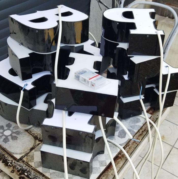 Lettre en Alu et plastique Lumineuse. Lettre d'enseigne professionnelle utiliser en Galerie son donc rester en intérieur et non pas subis les intempéries 10€ pièce.... Lettre disponible Reste 1E 1P