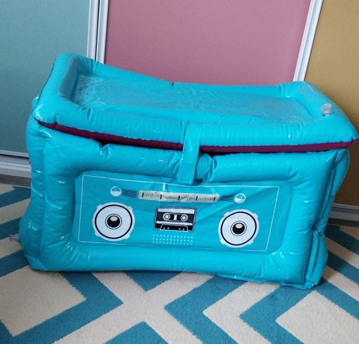A la base vendu pour être remplie de glaçons et de boissons pour les réceptions d'été, je l'ai acheté comme coffre de rangement gain de place mais finalement je m'en suis jamais servie 30 de profondeur, 55 de large, 35 de hauteur.