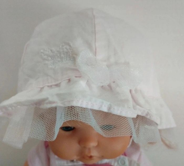Chapeau rose clair avec tulle blanc taille 47cm - photo numéro 2