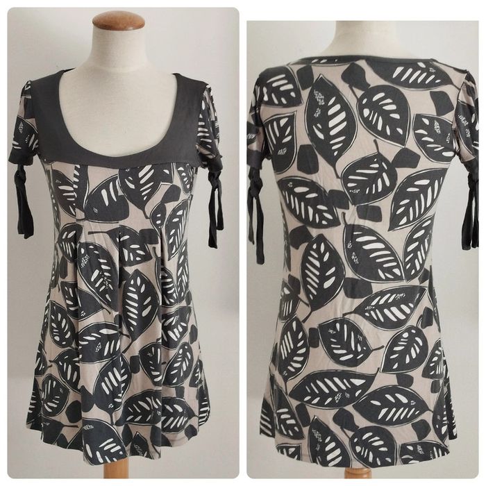 Blouse manches courtes grise et beige Camaïeu taille 38