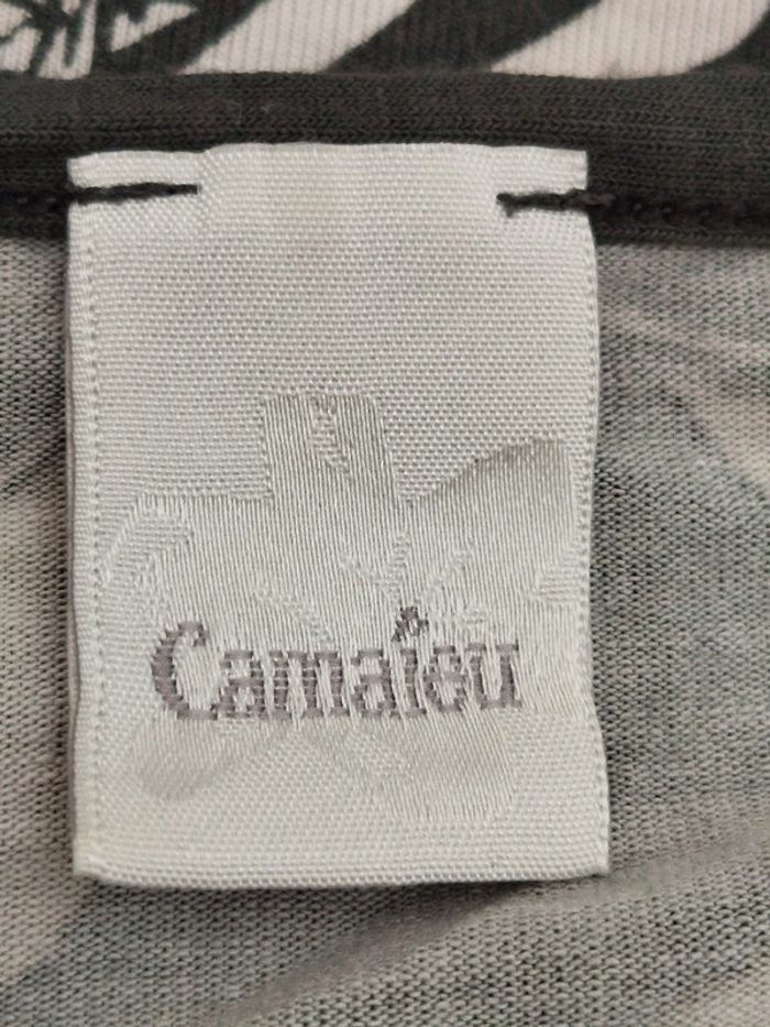 Blouse manches courtes grise et beige Camaïeu taille 38 - photo numéro 5