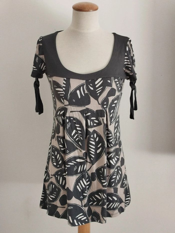 Blouse manches courtes grise et beige Camaïeu taille 38 - photo numéro 2