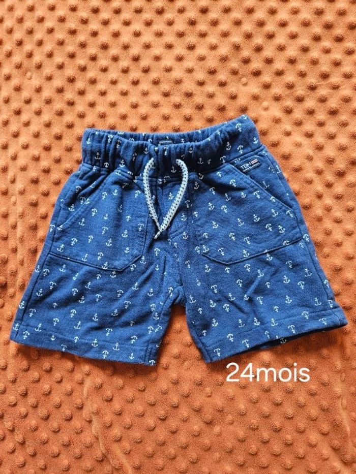 Short bleu motif ancres avec cordon pour resserrer à la taille. Taille 24mois (86cm) Tres bon etat, sans trou ni tache. D'autres vêtements sont disponibles dans mon dressing en taille 24mois : #24moisLisaRi